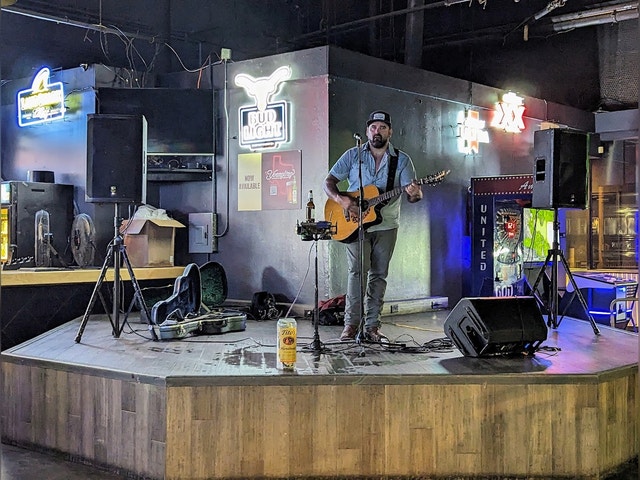 Jumbo Packers-themed sports bar with 15+ pool tables, shuffleboard & TVs plus live music & karaoke.
