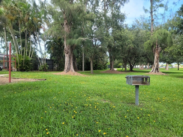 Park with a playground, an exercise course & lighted tennis, racquetball & handball courts.