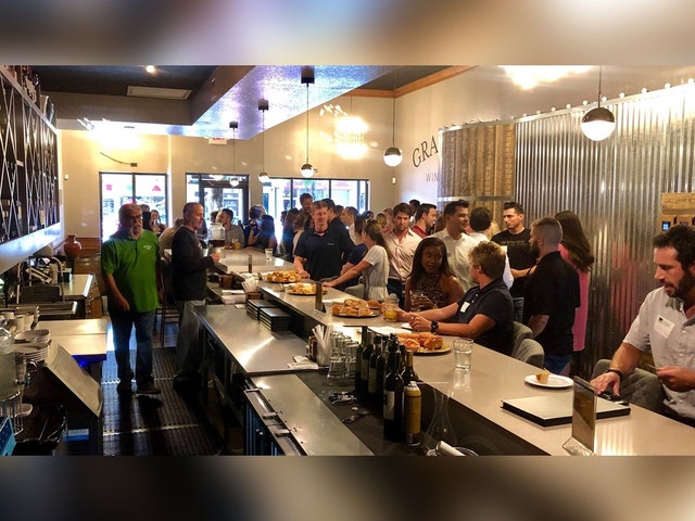 Self-pour tap system (wine and beer) and a menu of small plates (charcuterie, cheese) in a cozy environment.