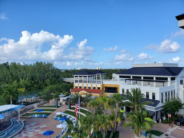 High-end hotel featuring an upscale seafood restaurant, a poolside bar & a fitness center.