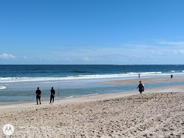 Uncrowded beach park with picnic tables and a public restroom, plus a shower.